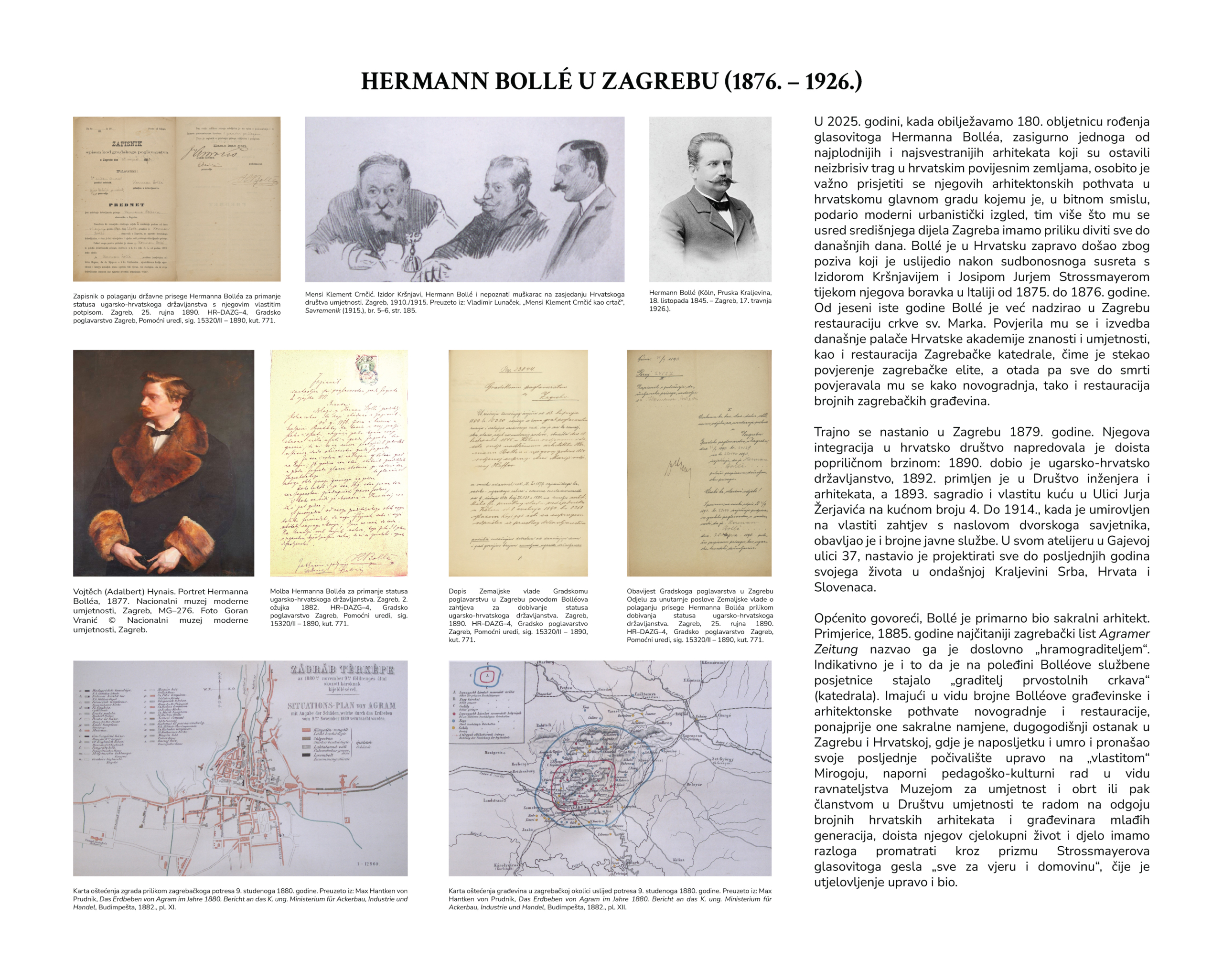 Godine 2025. Državni arhiv u Zagrebu obilježava Međunarodni tjedan arhiva (pod cjelogodišnjom temom arhiVtektura) izložbom organiziranom povodom 180. obljetnice rođenja Hermanna Bolléa, jednoga od najznačajnijih i najsvestranijih arhitekata koji su trajno obilježili hrvatski povijesni prostor, a poglavito onaj zagrebački. Njegovo djelovanje u Zagrebu presudno je pridonijelo oblikovanju modernoga urbanog identiteta grada, čiji se ponekad kontroverzni, ponekad hvaljeni rezultati i danas jasno očituju u njegovoj arhitektonskoj slojevitosti. Prvotno fizički održana na Trgu bana Jelačića u Zagrebu od 13. do 19. listopada 2025. godine, ova je izložba sada dostupna i kao virtualna na mrežnim stranicama Državnoga arhiva u Zagrebu.