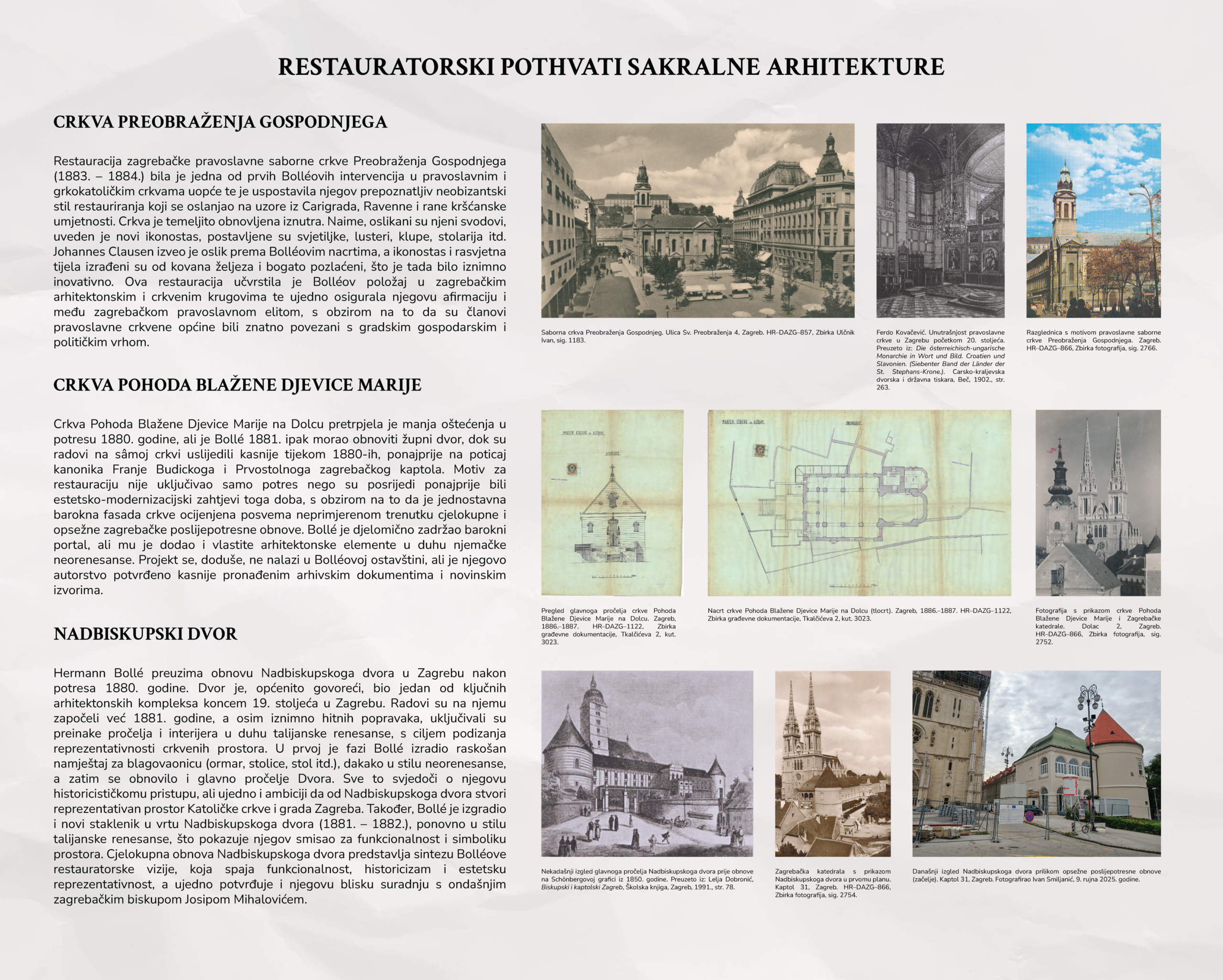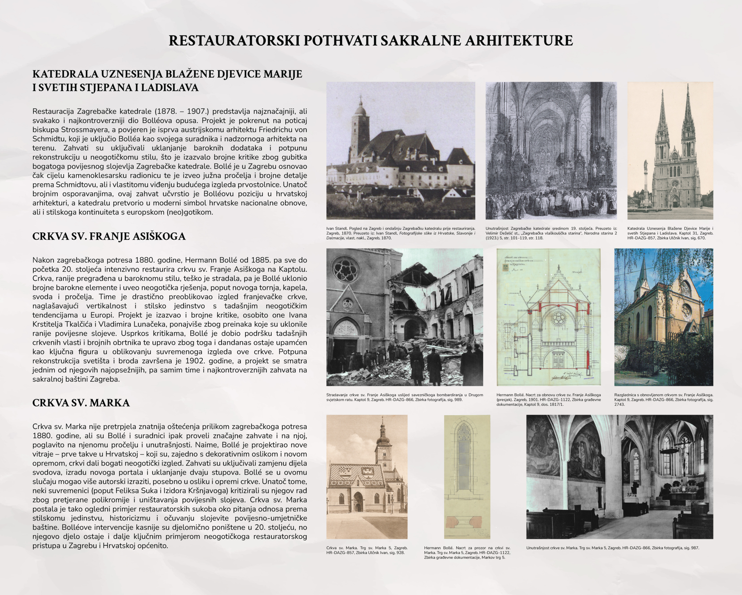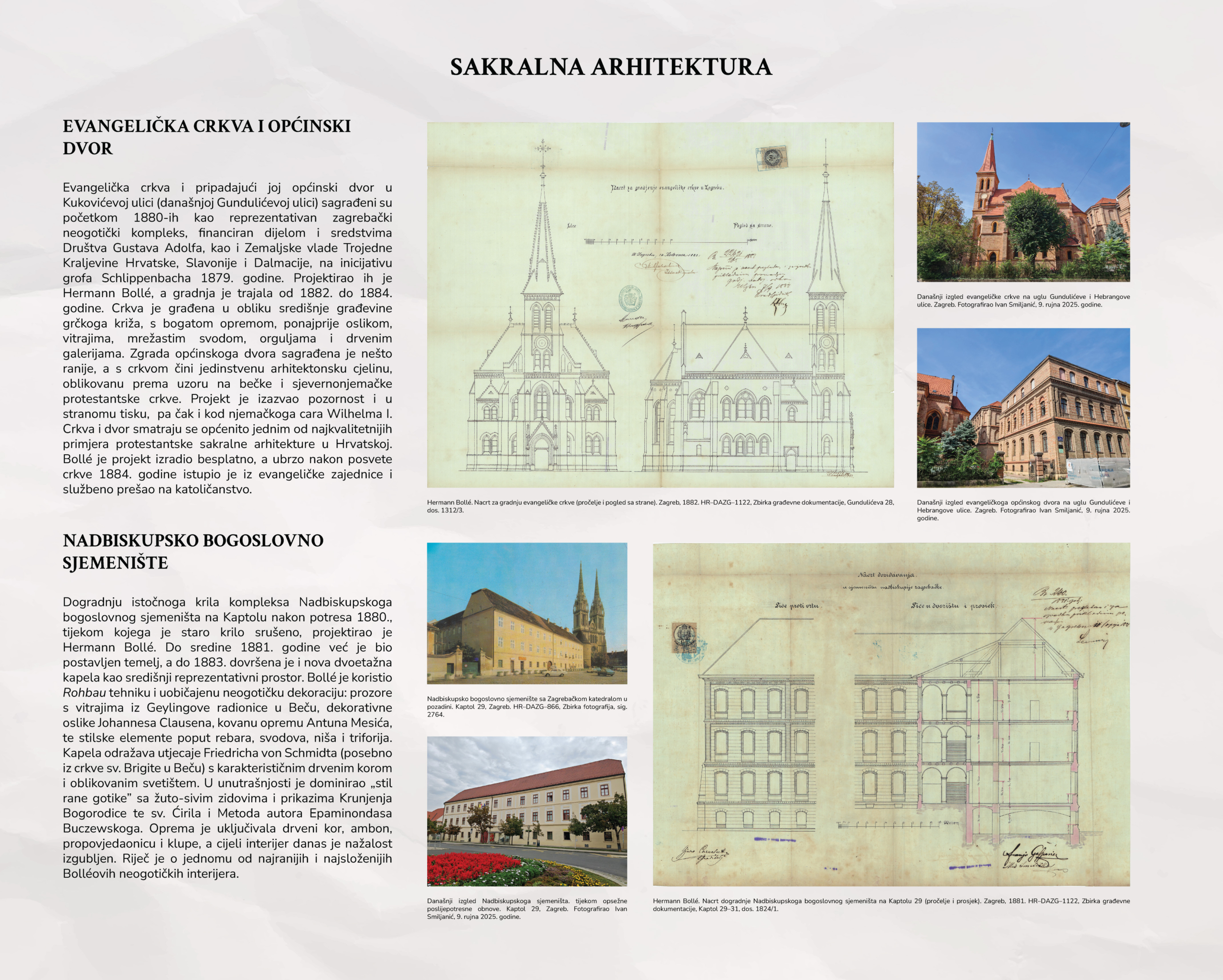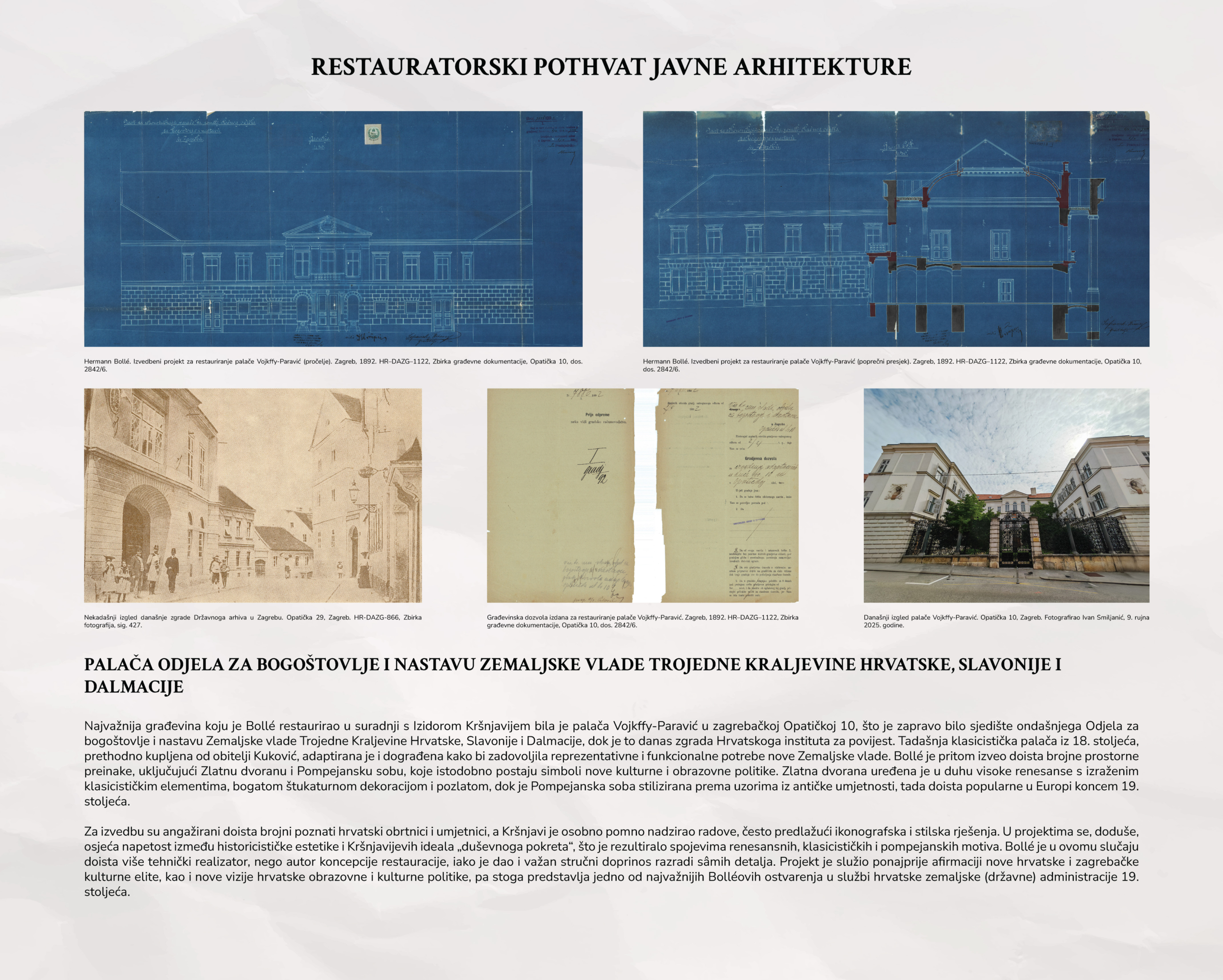 Izložba o Hermannu Bolléu pod Strossmayerovim glasovitim geslom donosi kronološki pregled Bolléova djelovanja u Zagrebu, smještajući ga u širi povijesni i kulturni kontekst onoga vremena. Poseban naglasak stavljen je na sakralnu i javnu arhitekturu te na restauratorske zahvate, pri čemu se, na temelju arhivskoga gradiva Državnoga arhiva u Zagrebu, rekonstruiraju projektantski procesi i razvoj pojedinih zahvata. Obrađeni su najvažniji projekti koji su sudjelovali u oblikovanju vizualnoga identiteta Zagreba na prijelazu iz 19. u 20. stoljeće, uz isticanje Bolléove uloge u stvaranju reprezentativnoga urbanog prostora. Izložba ujedno naglašava vrijednost arhivskoga gradiva kao nezaobilaznoga izvora za razumijevanje i tumačenje graditeljske i kulturne baštine.